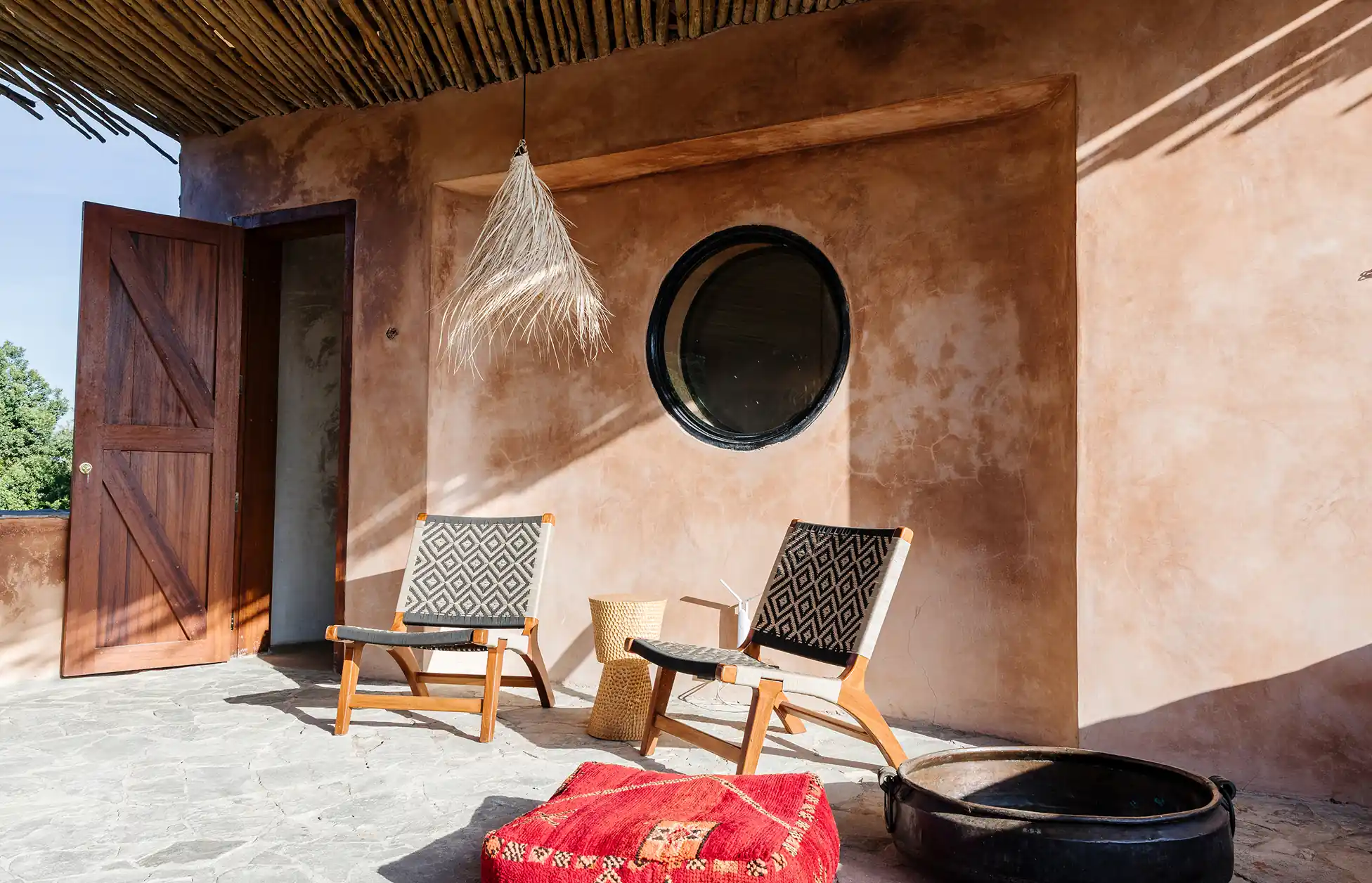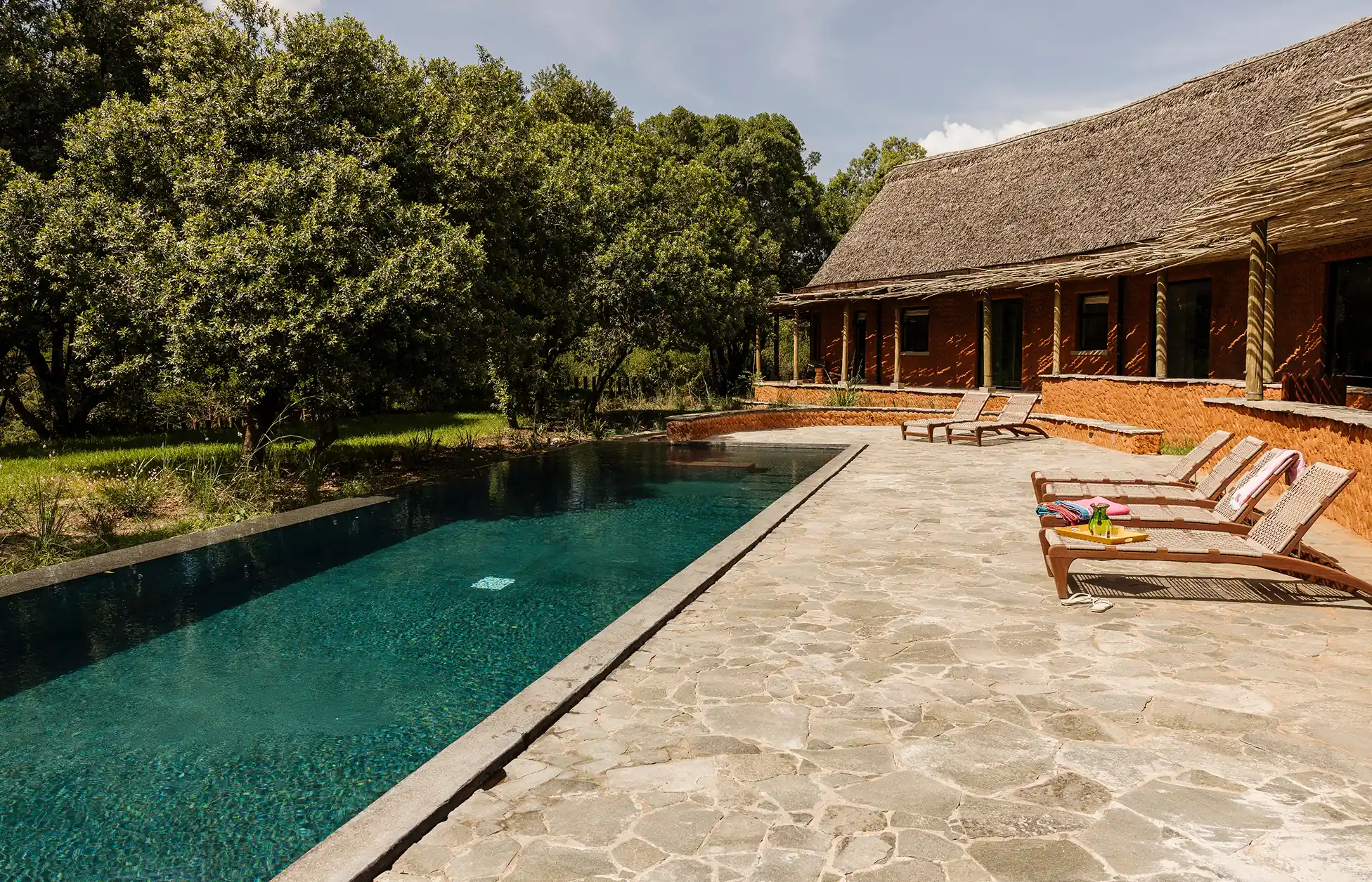 Natumoi was built as a counterbalance to that. A place where families can slow down, reconnect and share time together in a way that is increasingly rare in modern life. The architecture draws inspiration from the circular form of traditional Maasai mud huts, reimagined as a contemporary bush home. Many of the materials and details come from Kenyan artisans and brands we admire. From beadwork crafted by Maasai women to furniture and textiles made locally. It is not designed to feel like a hotel. Children run between rooms. Friends gather at the bar. Wildlife moves quietly through the landscape around the house. For us Natumoi is a place to build memories as a family. We hope it becomes the same for yours.